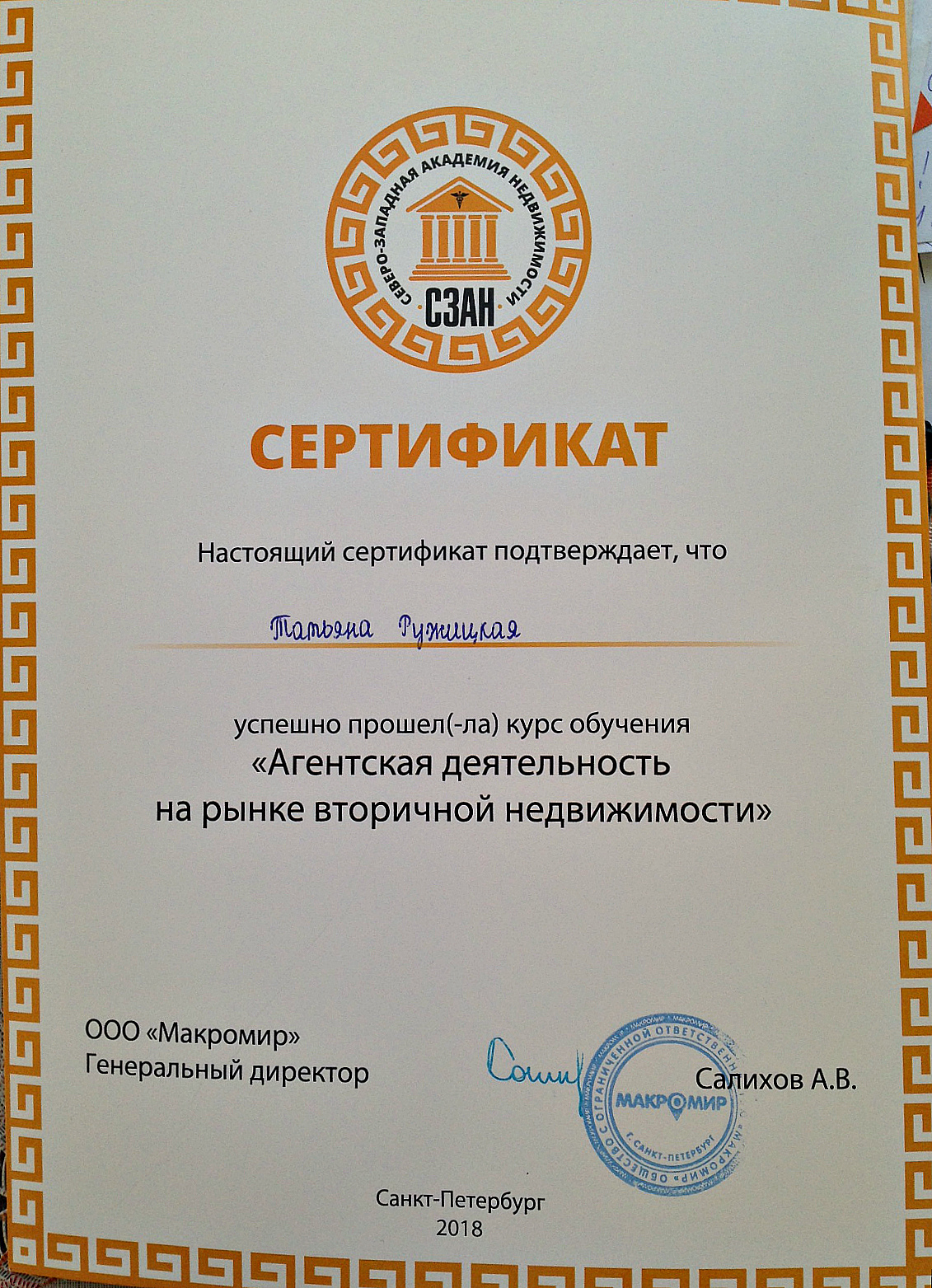 Благодаря Татьяне приобретаю уже вторую недвижимость. Обе сделки прошли гладко и юридически чисто. Спасибо Вам большое за помощь, за Ваши знания и за Ваши рекомендации.