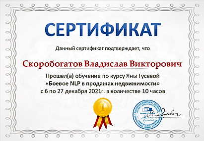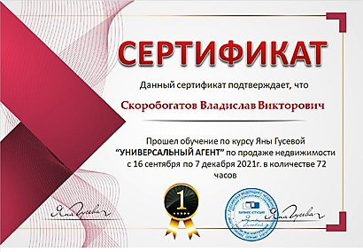 Выражаю огромную благодарность Скоробогатову Владиславу, за полное сопровождение и поддержку в участии сделки по продаже квартиры. За высокий профессионализм, компетентность в своей работе и ответственный подход к делу, четкое и оперативное решение всех вопросов и задач. На все вопросы-четкие быстрые ответы. Сделка прошла четко и быстро.