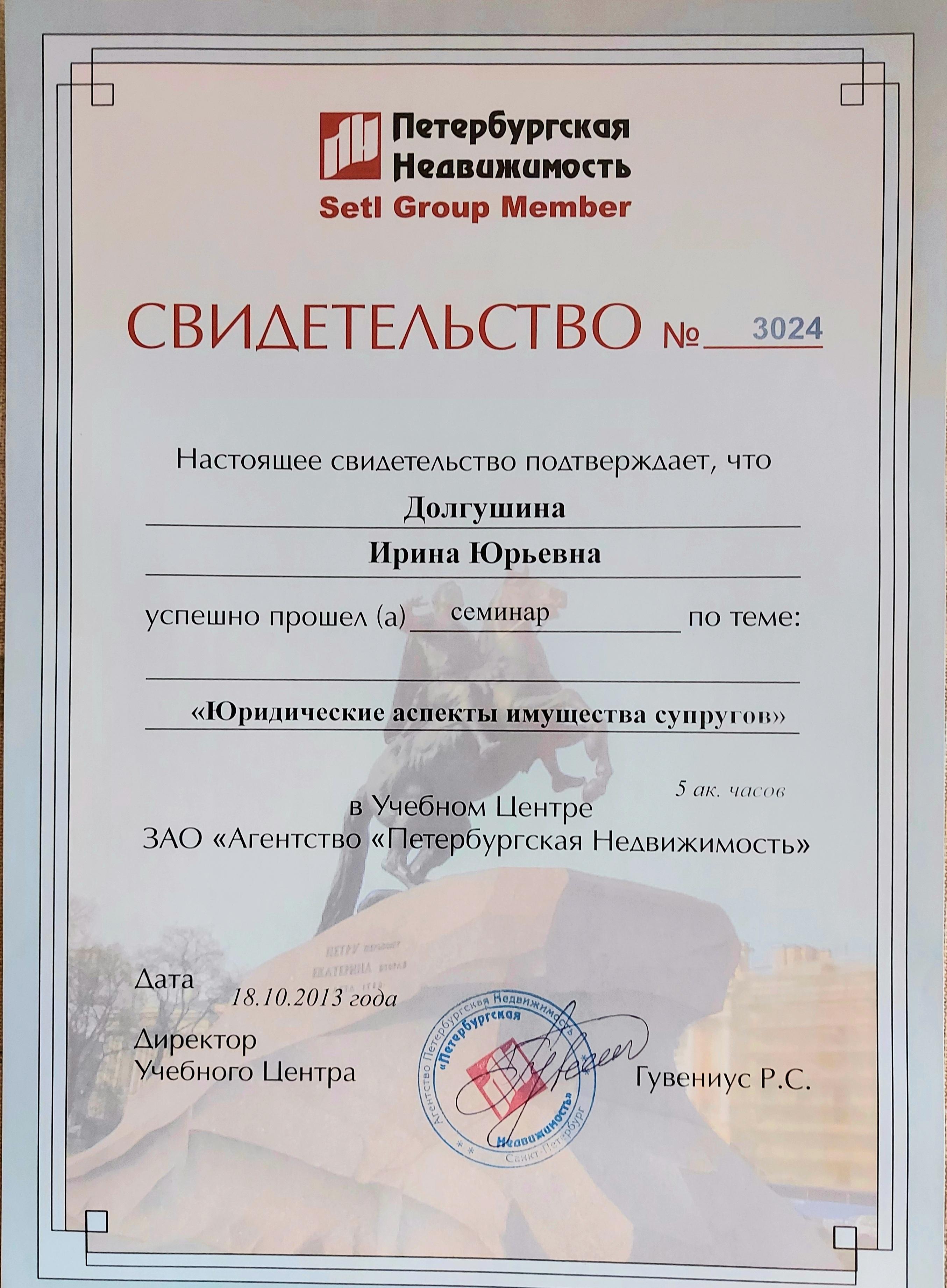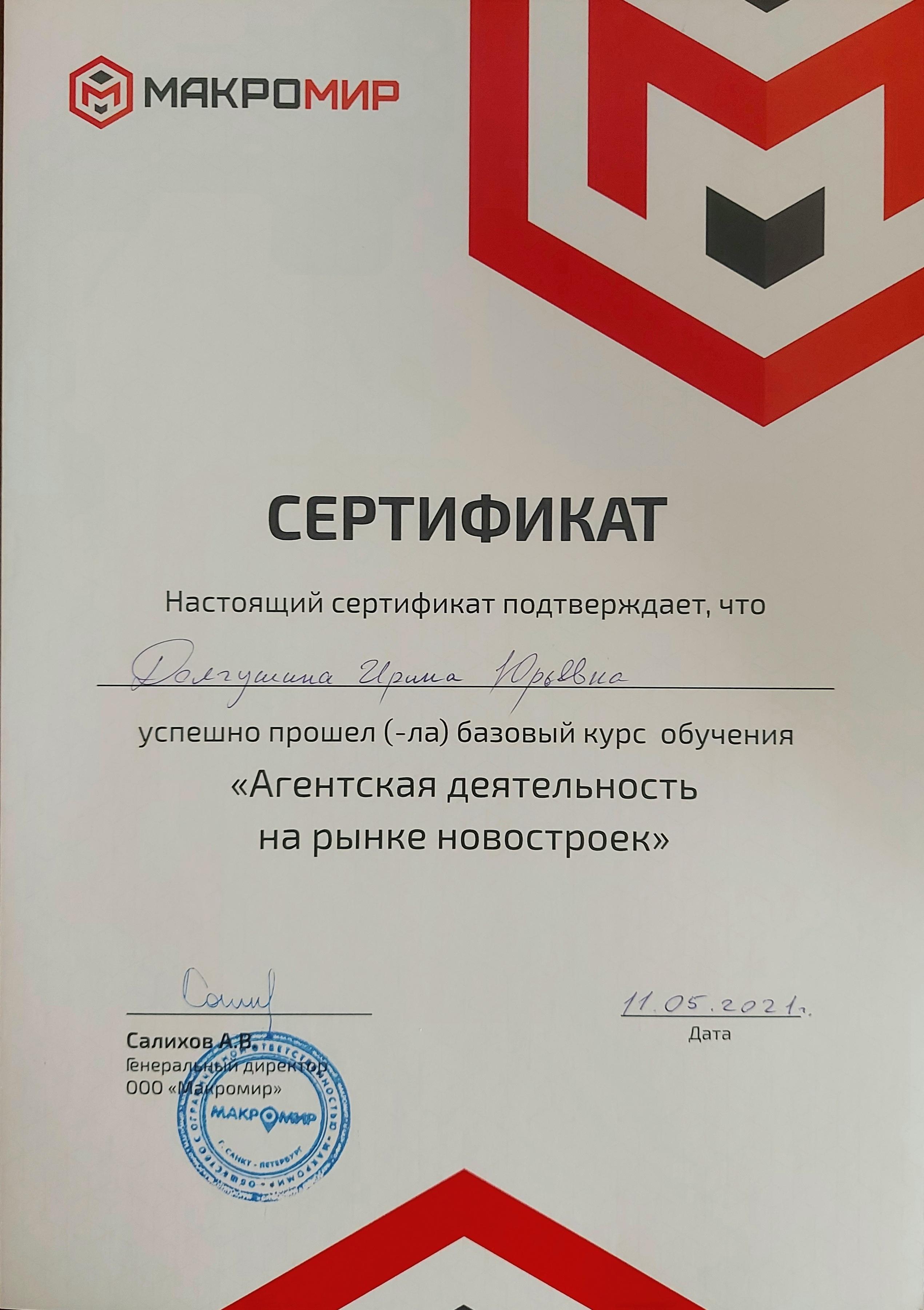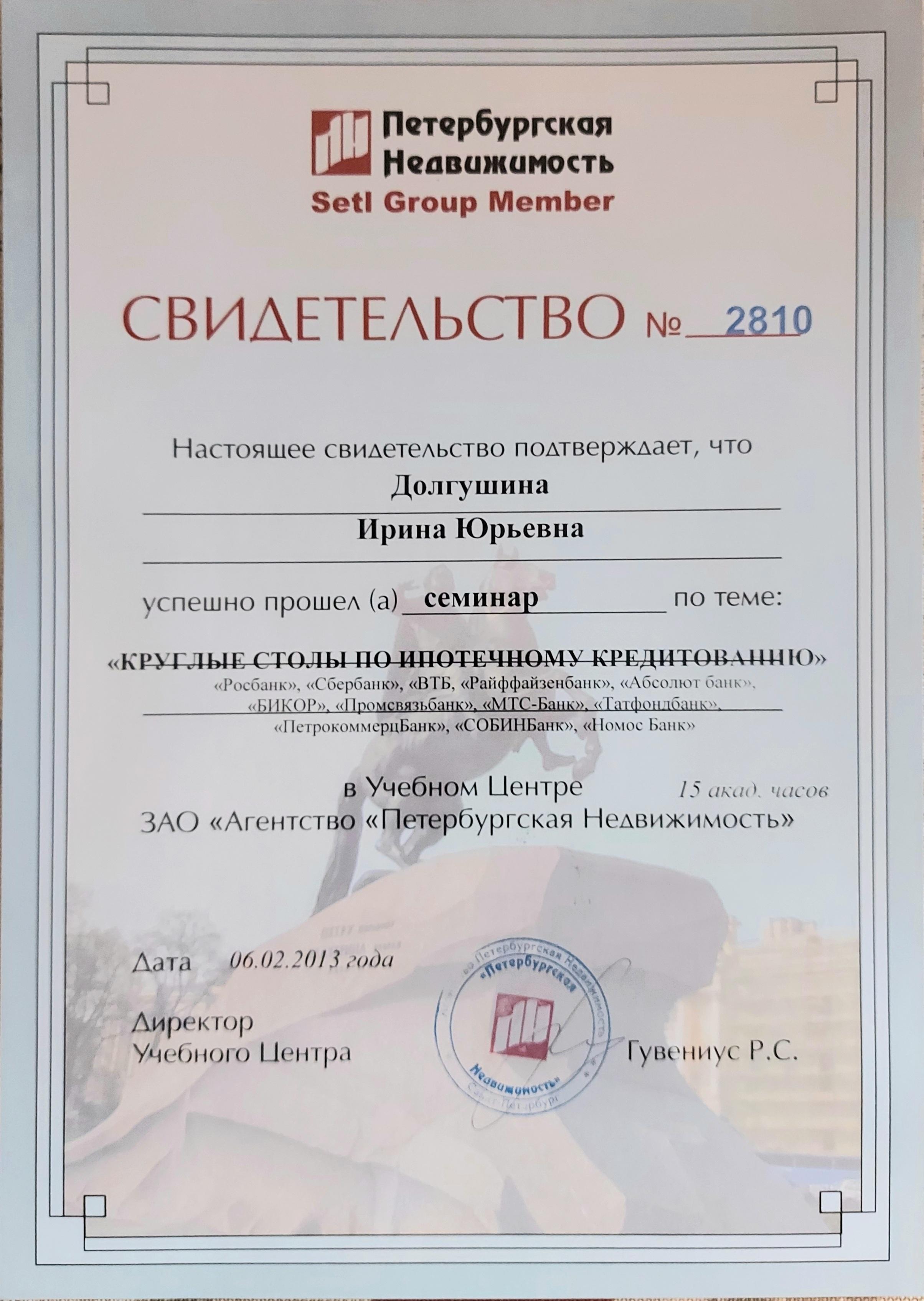 Я однозначно рекомендую Ирину Долгушину как надежного партнера на рынке недвижимости СПб и Лен.области. И выражаю глубочайшее уважение за столько редкую комбинацию высокого профессионализма и прекрасных человечески качеств!