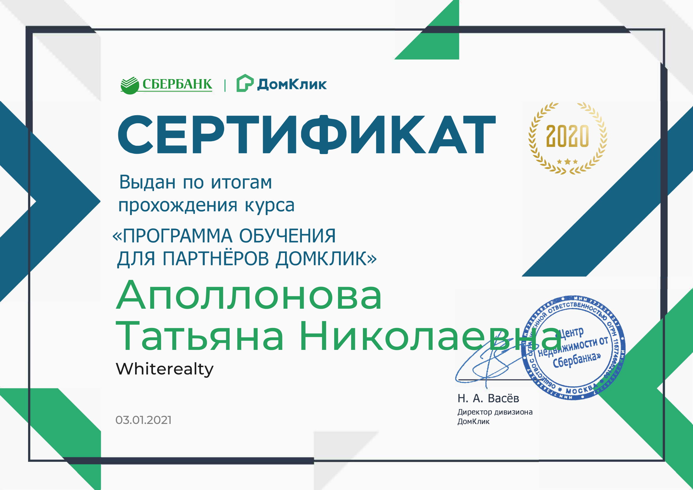 Выражаю благодарность Аполлоновой Татьяне за отличную работу! Чёткий план помог осуществить нашу сложную сделку. Татьяна отличный переговорщик, благодаря этому у нас всё сложилось. Профессионализм, владение своими эмоциями, индивидуальный подход и деловые отношения с клиентами, сотрудниками банка, нотариусом и органами опеки. Всё на высшем уровне!