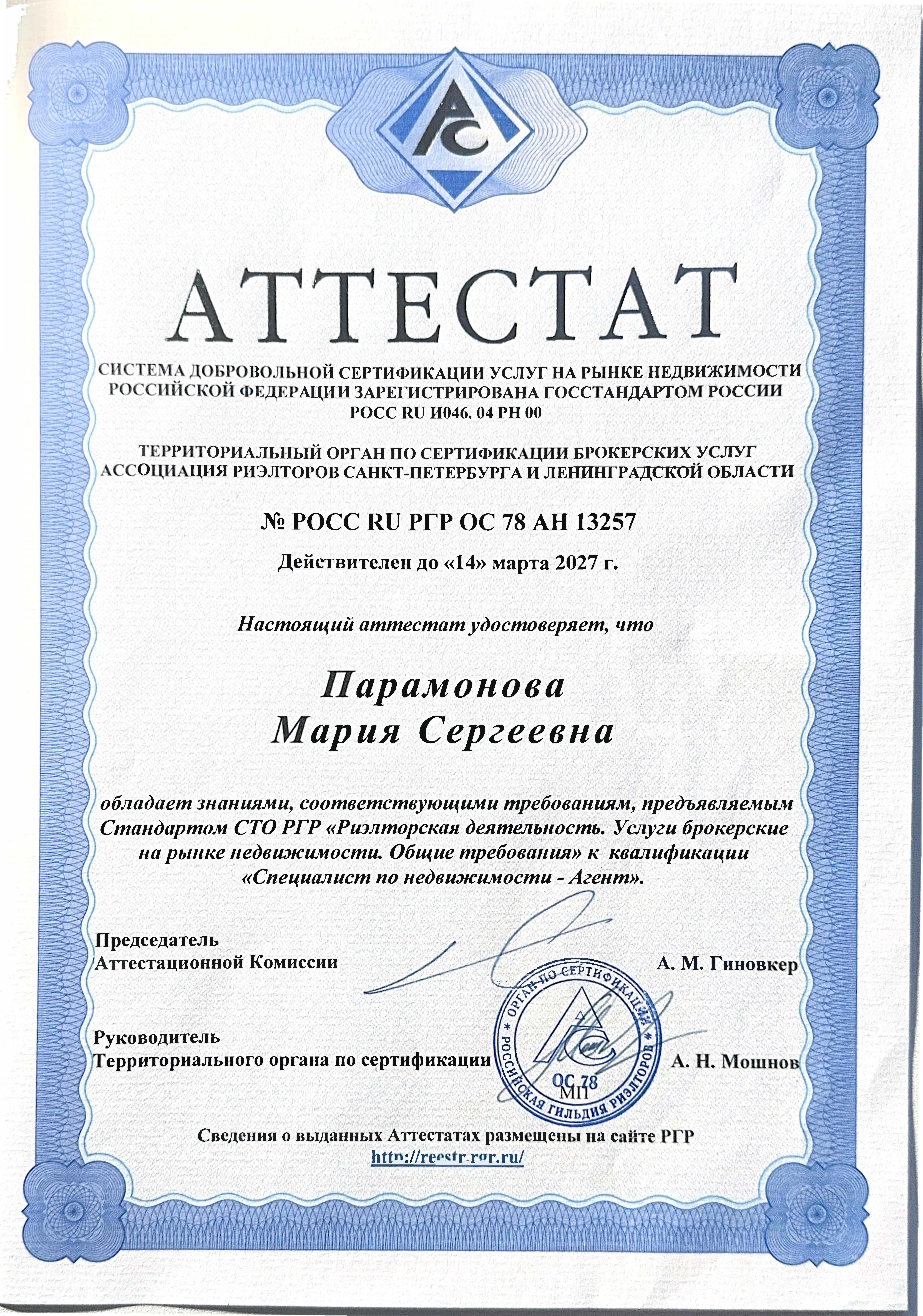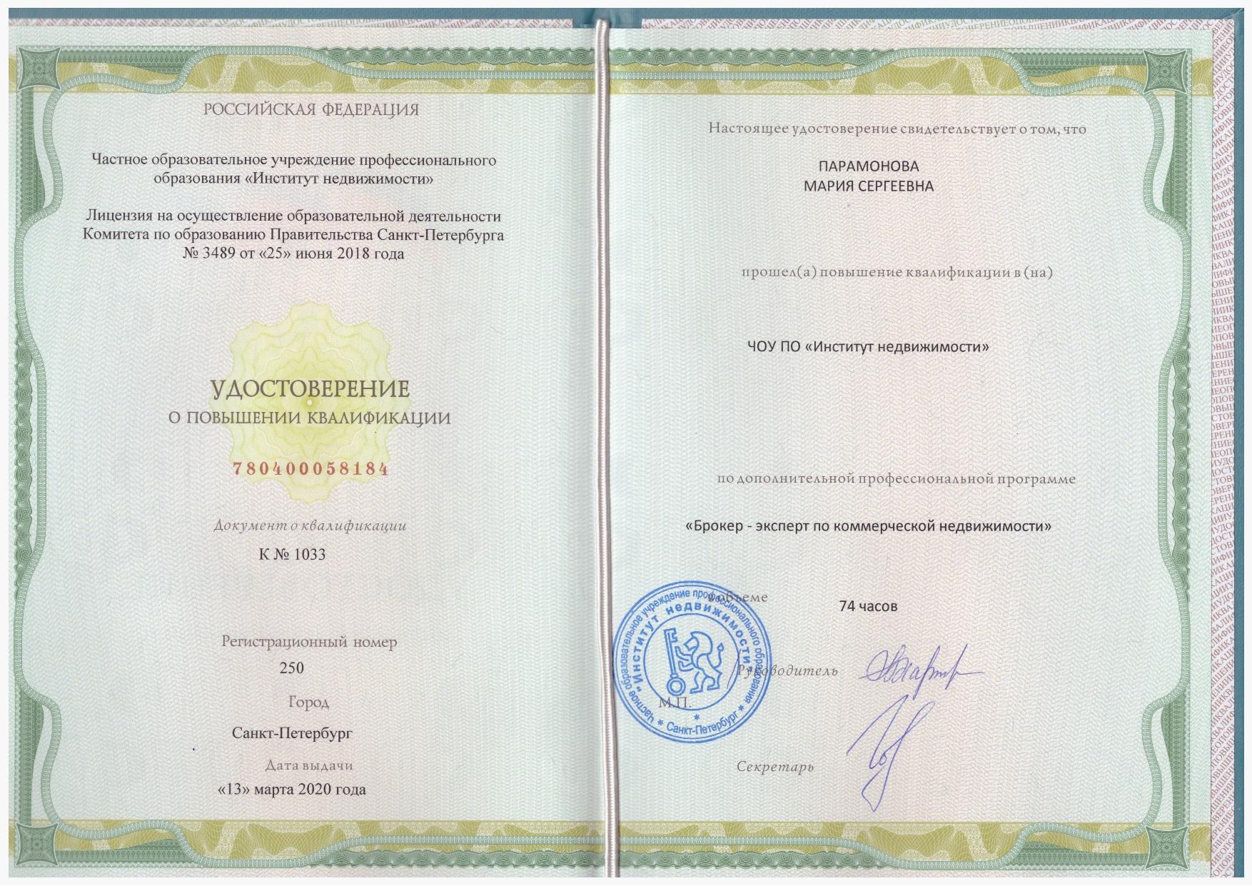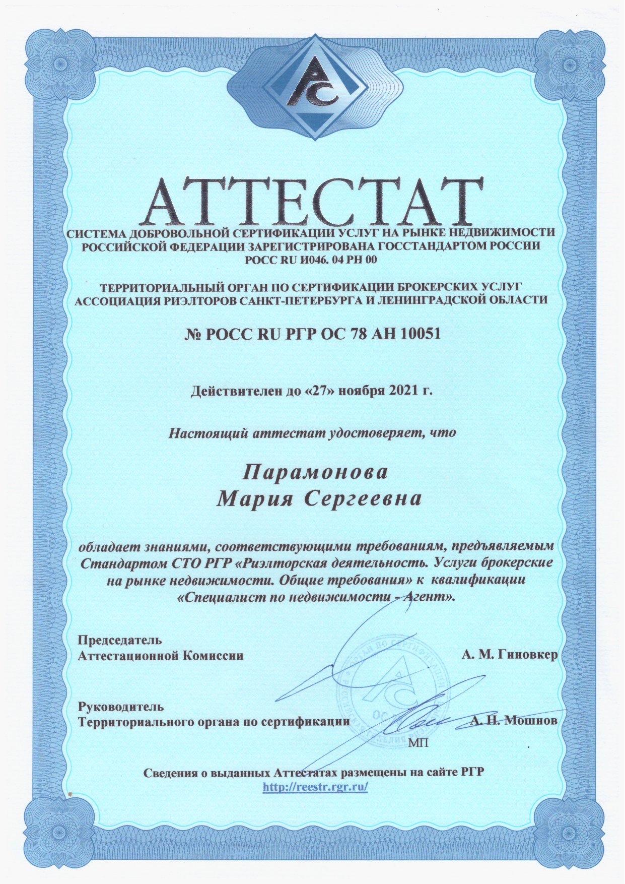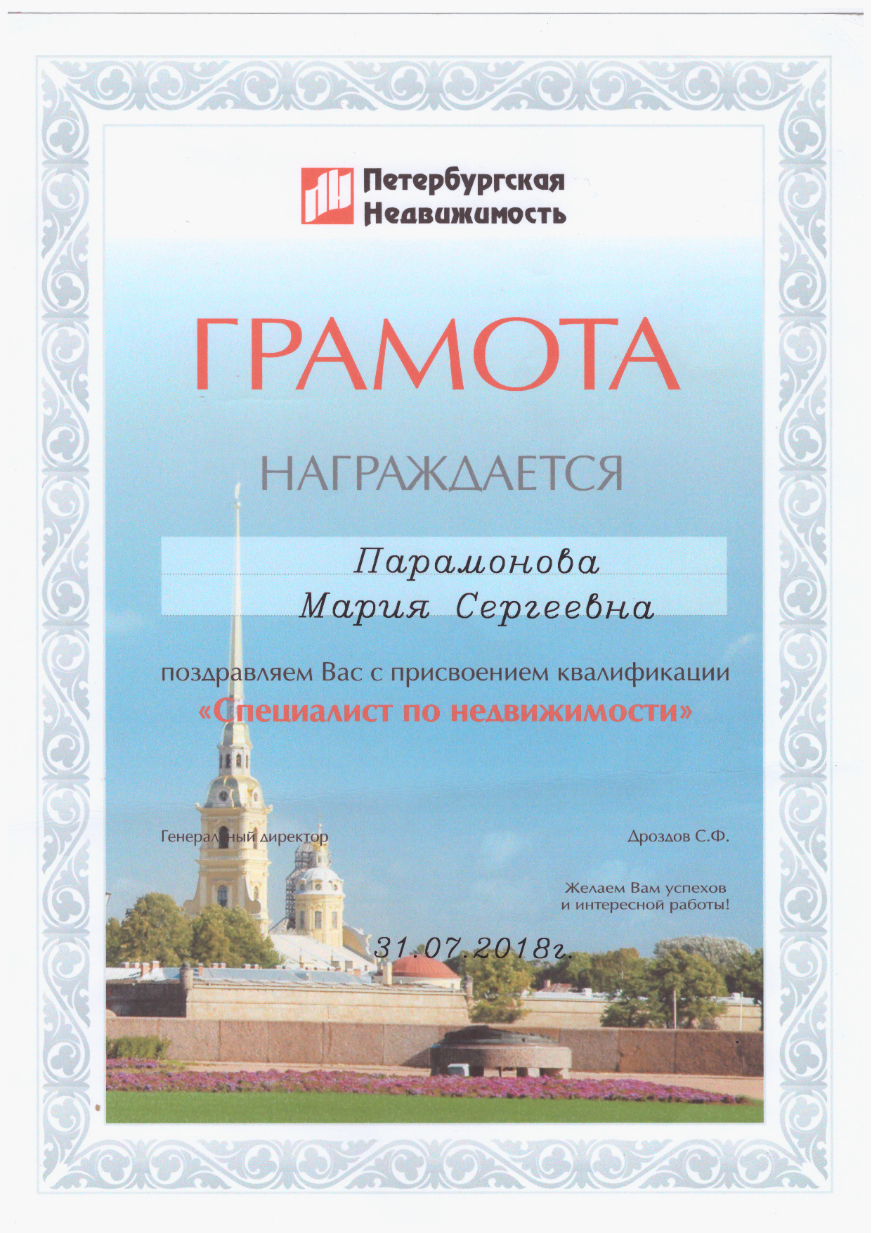 Эксперт по жилой и коммерческой недвижимости. Являюсь членом Ассоциации Риэлторов Санкт - Петербурга и Ленинградской области с 2017 г. В 2020г. Окончила институт недвижимости по 2 специализациям: "Юрист консультант в сфере недвижимости" "Брокер-в сфере коммерческой недвижим