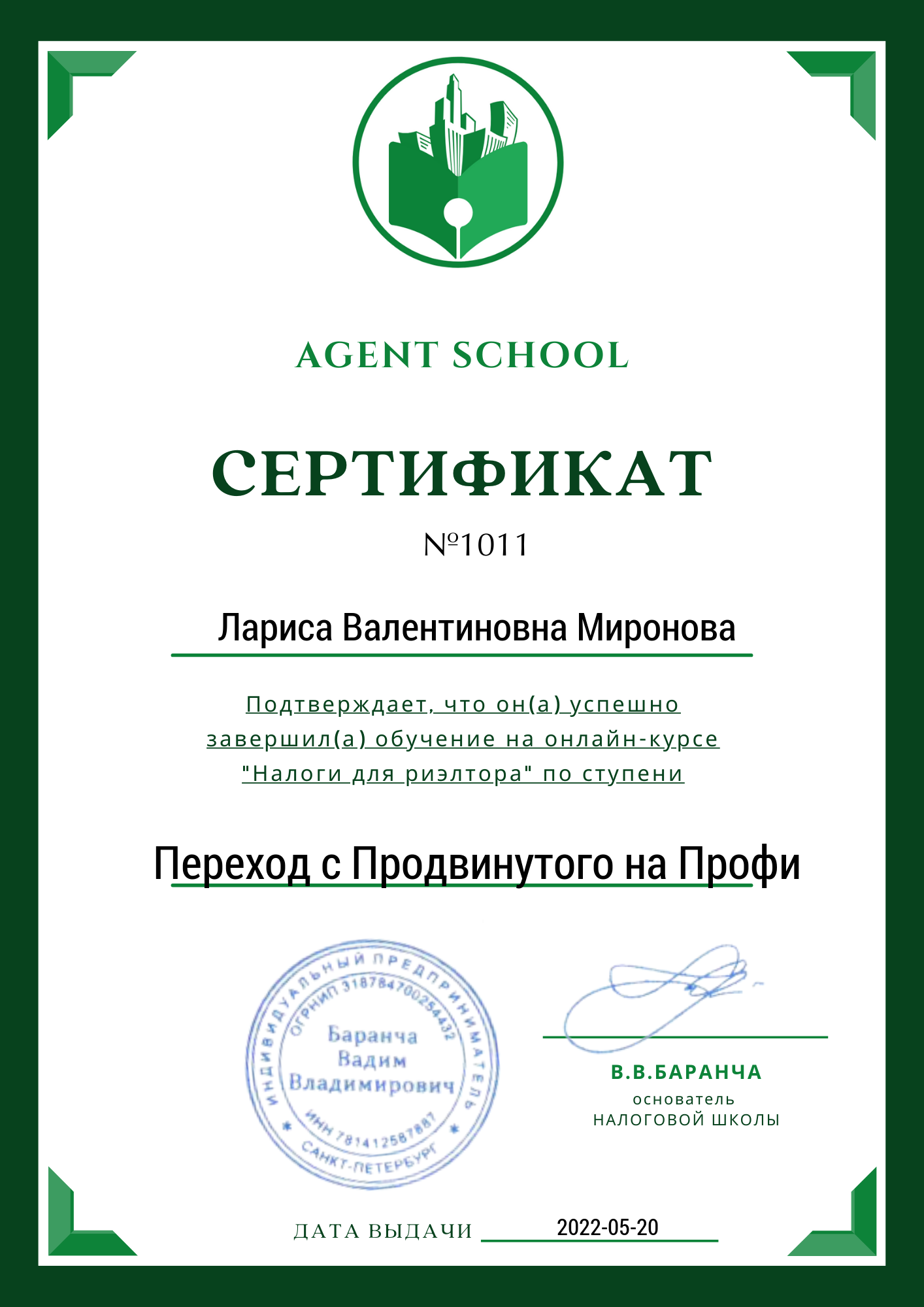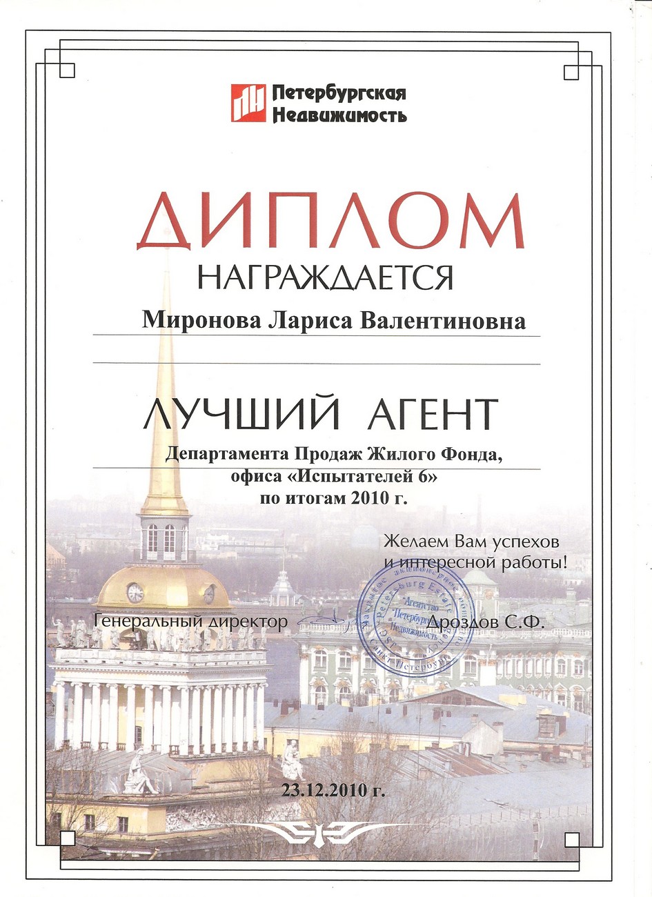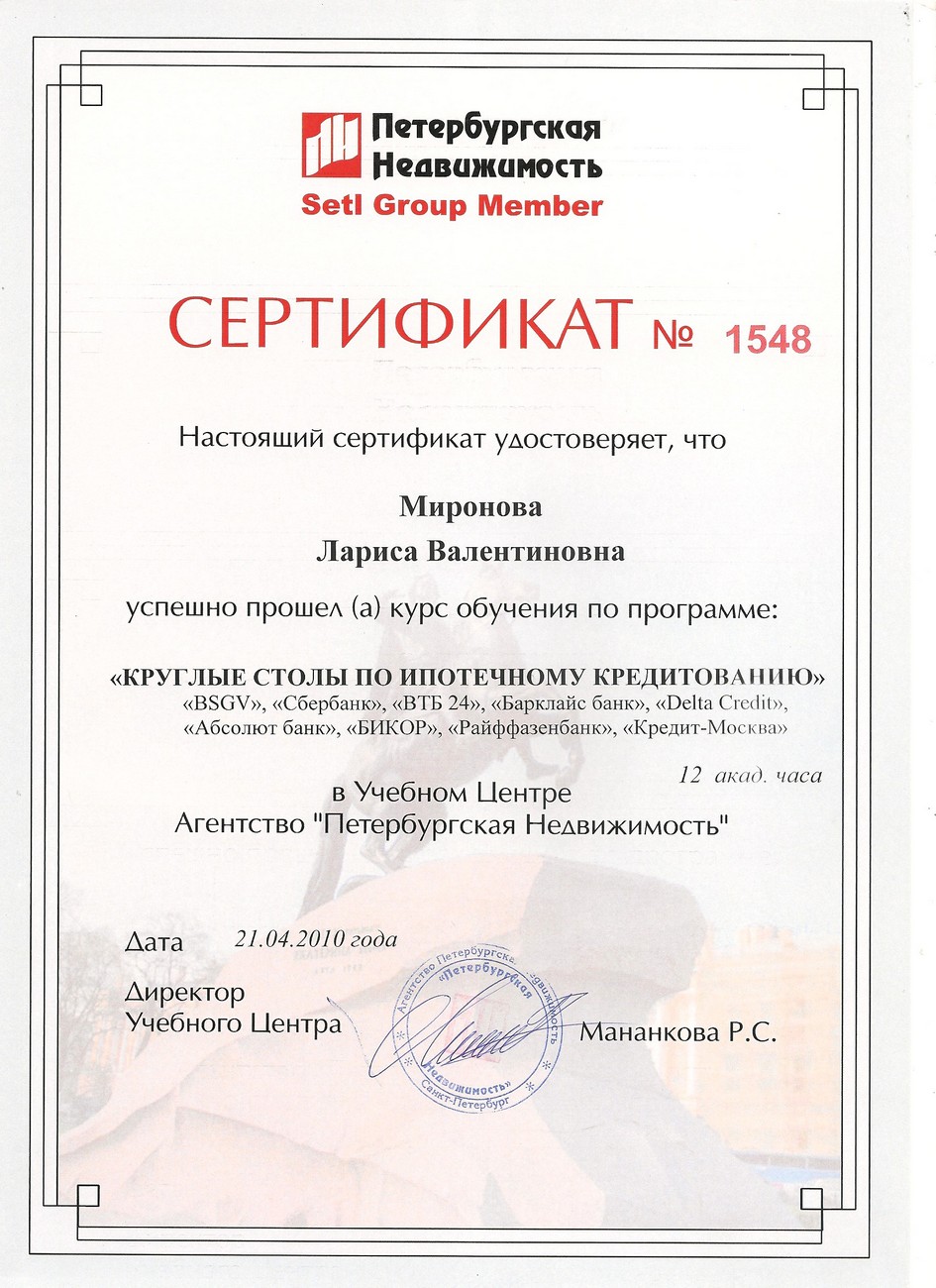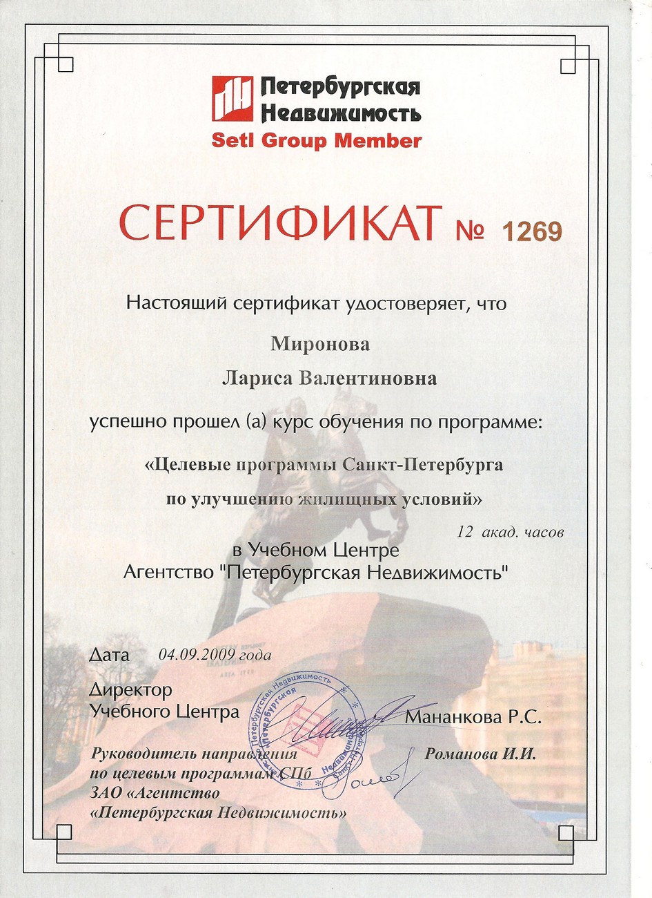 Опыт в недвижимости 20 лет. 15 лет работала специалистом по недвижимости в агентстве "Петербургская Недвижимость" (отдел вторичной недвижимости - продажа\покупка), в агентстве "РусланД" - специализация по коммерческой недвижимости. В течение всего этого времени - консультации, подбор и сопровождение сделок по строящимся объектам Санкт-Петербурга и Ленинградской области. Опыт покупки/продажи недвижимости в Турции. Аттестована и состою в Российской Гильдии Риэлторов. Отзывы клиентов - на странице в VK