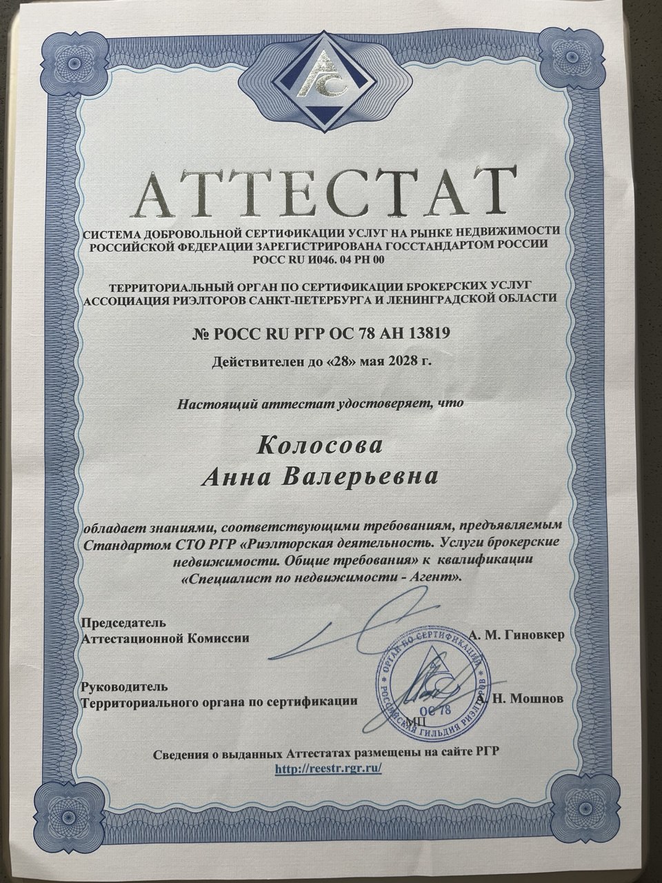 Добрый день! Меня зовут Анна ) Я 10 лет работала руководителем отдела продаж в крупном медиахолдинге. Но решила, что хочу двигаться дальше самостоятельно и заняться тем, что меня всегда интересовало и увлекало - вопросами недвижимости и инвестиций. Теперь я являюсь специалистом по продаже и покупке вторичной недвижимости, покупке новостроек, аренде. Живу в Красносельском районе, недалеко от Финского залива. Очень люблю свой город, район и знаю тут буквально каждый дом) Всегда серьезно подхожу к решению задачи клиента.Ведь важно не продать или купить квартиру, а улучшить условия жизни человека!