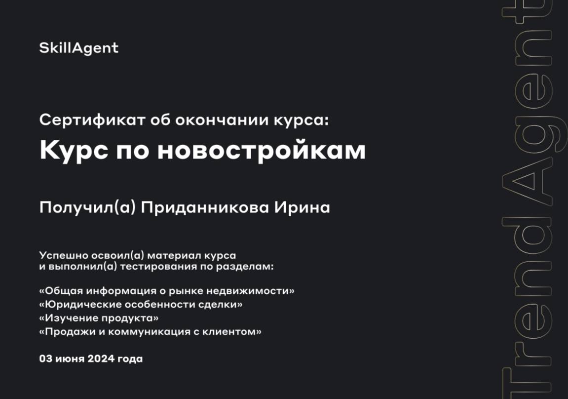 Приветствую Вас. Меня зовут Ирина и я эксперт по недвижимости в СПб. В макромире совсем недавно, но в этой сфере уже опытный специалист. Работаю на вторичном, первичном рынке и с загородной недвижимостью. В моей команде есть ассистент и юрист, сложных сделок не боимся. Моя главная задача - помочь Вам достичь вашей главной цели! За рекомендацию меня как эксперта благодарность от 10.000 руб. Обращайтесь=)