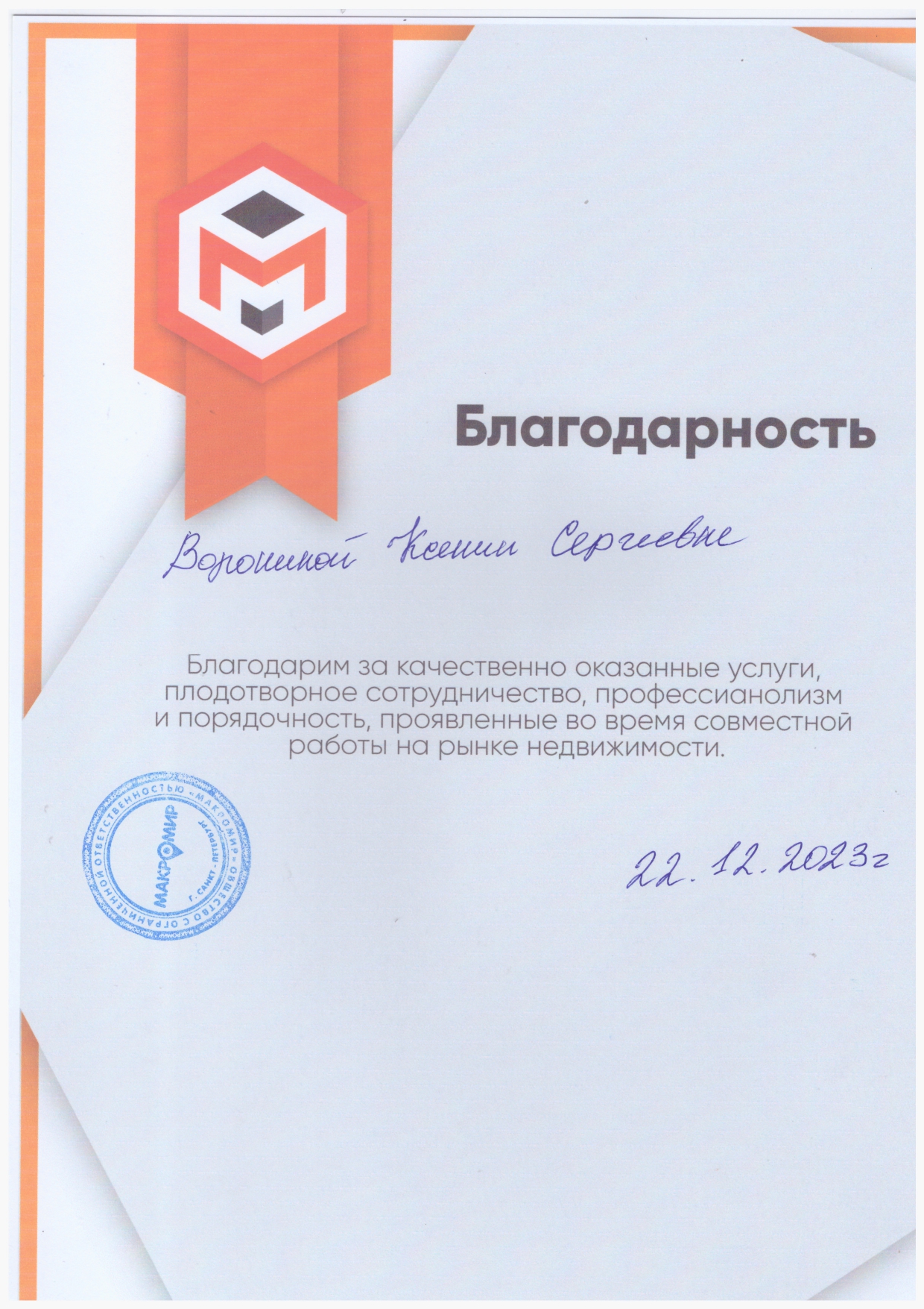 Я впервые покупал недвижимость, и Воронина Ксения сделала этот процесс легким и понятным. Она объяснила все нюансы и помогла избежать возможных ошибок.