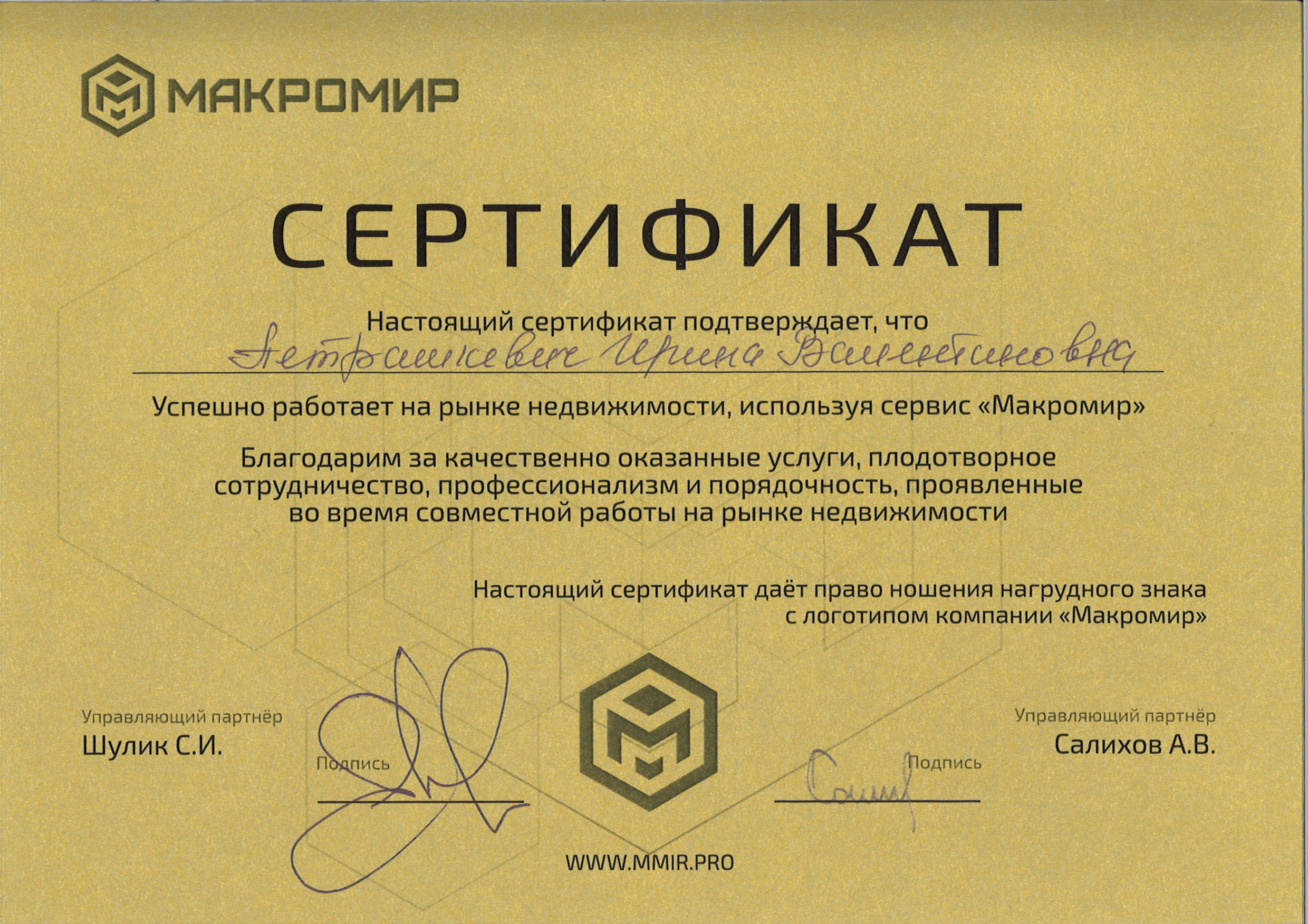 профессионализм, терпение и целеустремленность. Очень рада, что из всех риэлторов выбрали
