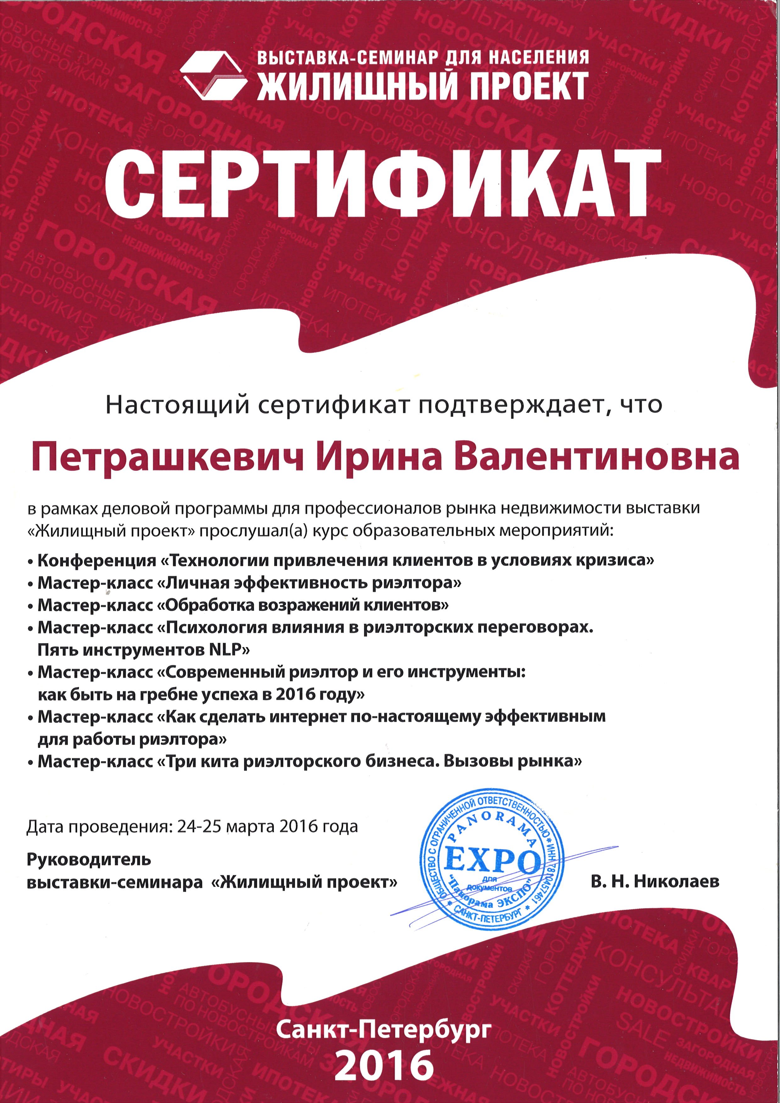 Хочу выразить благодарность Ирине Петрашкевич за великолепно выполненную работу!