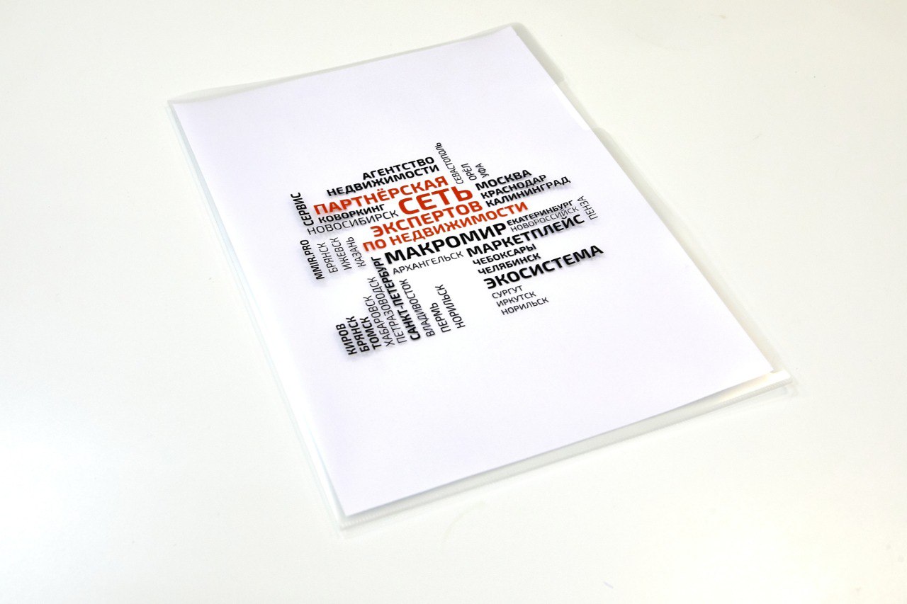 Папка презентационная с логотипом «Макромир». Картон 300г, с отверстием для визитной карточки, размер 30 х 22 см.