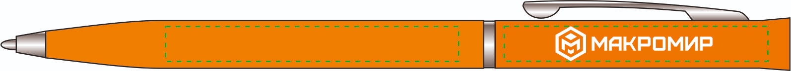 Ручка шариковая автоматическая с логотипом «Макромир». Корпус пластиковый, цвет ручки белый/оранжевый, размер: 14 см., цвет стержня синий, стержень 0,5 мм.