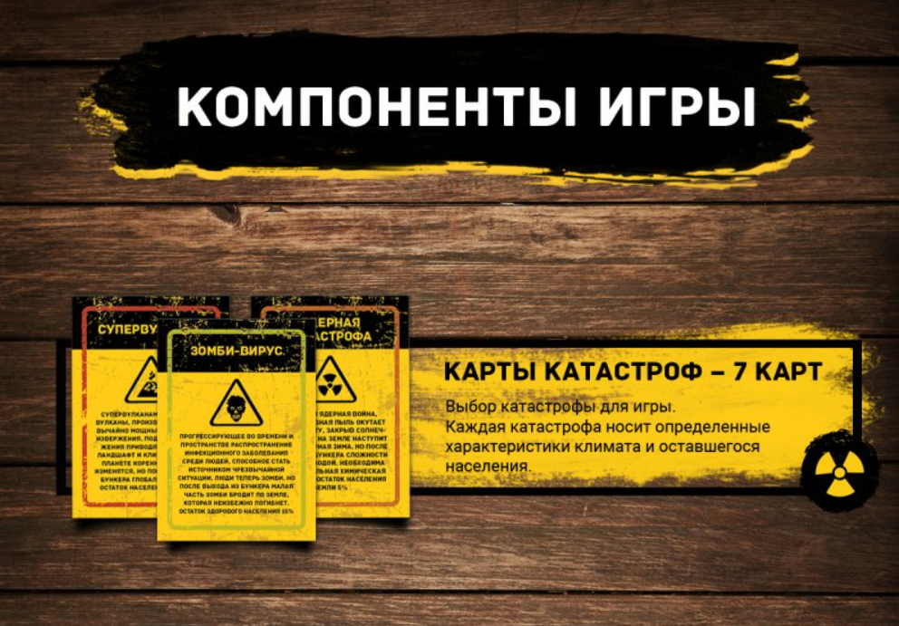 Мир меняется, технологии разрушают природу Земли, и возможность глобальной катастрофы уже не фантастика, а реальность. Но люди позаботились о своем спасении и создали бункер с полным жизнеобеспечением. Только попадут туда не все. Докажи игрокам, что именно ты достоин восстановить жизнь на Земле и войти в число выживших. Навыки и черты характера — твое оружие, острый ум и умение убеждать — твои козыри.